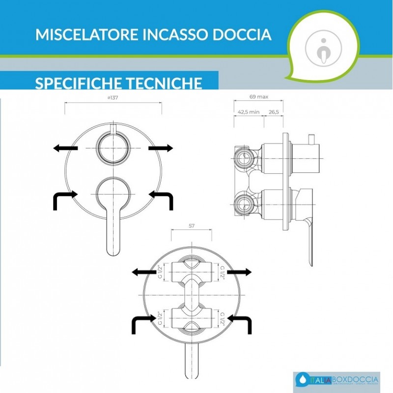 Il miscelatore incasso doccia con deviatore, grazie alla doppia uscita, è il giusto compromesso tra la praticità della doccetta e il getto avvolgente del soffione: con un solo semplice movimento, infatti, è possibile scegliere tra le due soluzioni.