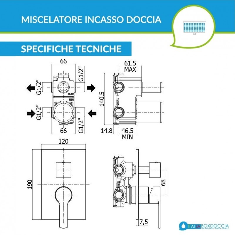 Tipologia: miscelatore doccia a 2 uscite con deviatore a 2 uscite + 1 posizione combinata