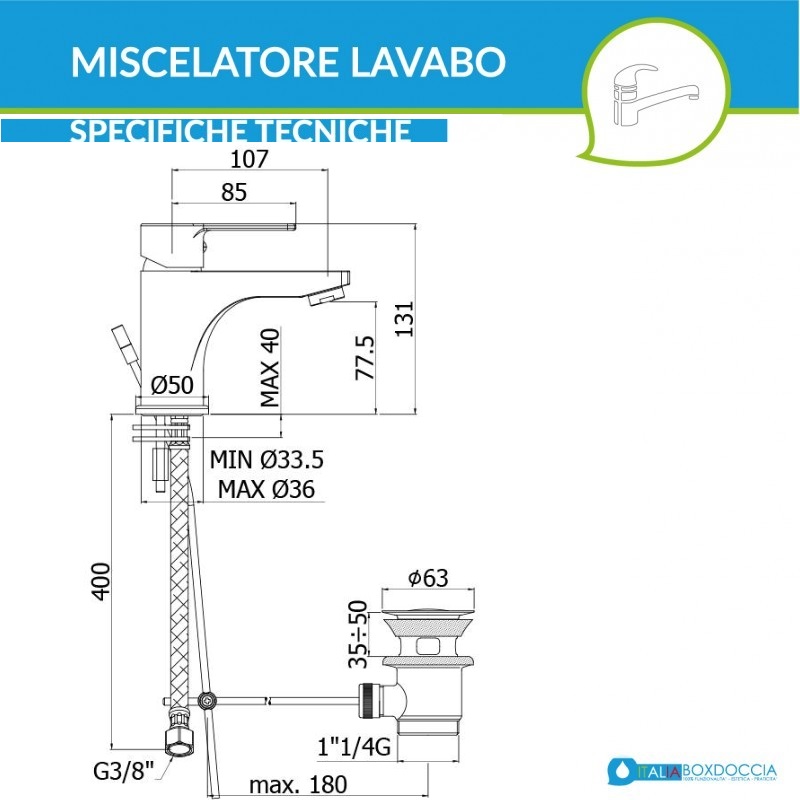Foro miscelatore: 1"1/4G. Piletta inclusa