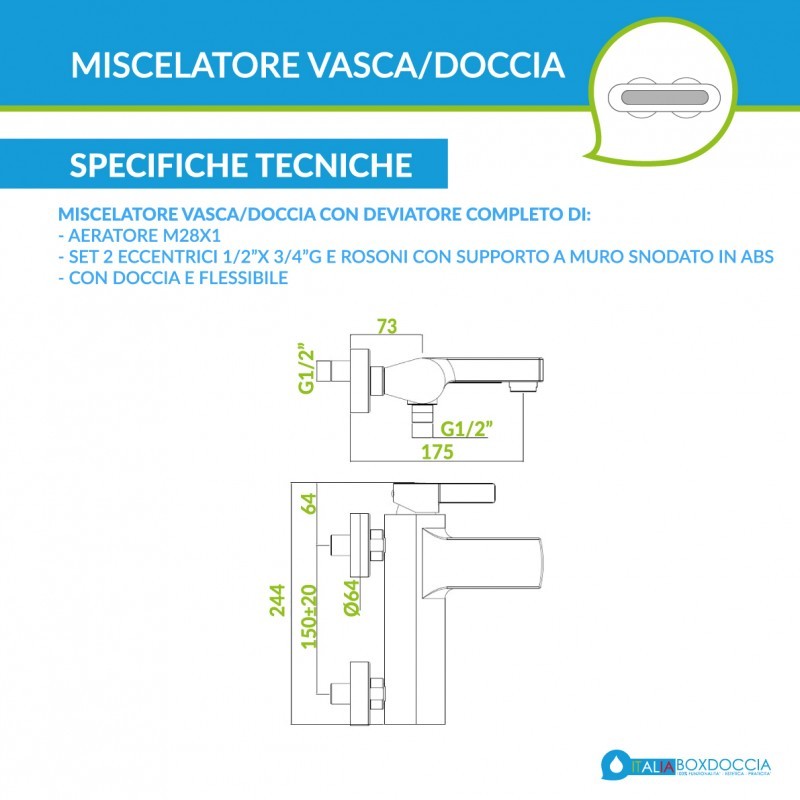 - 1 monocomando vasca completo di set doccia art. RO023 cr