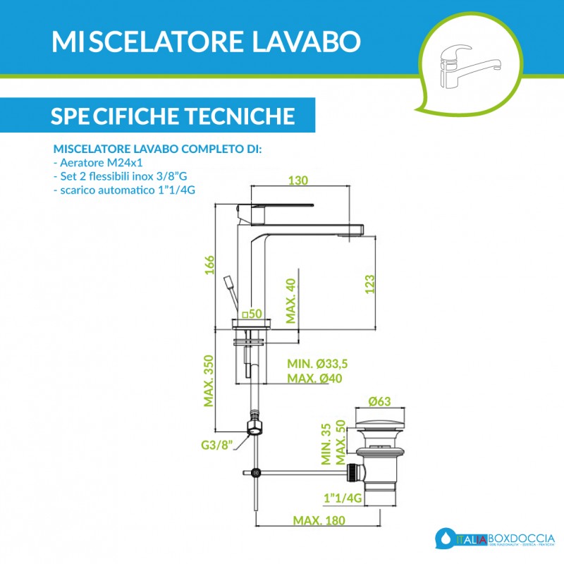 - 1 miscelatore per lavabo art. TA075 CR con saltarello e piletta di scarico