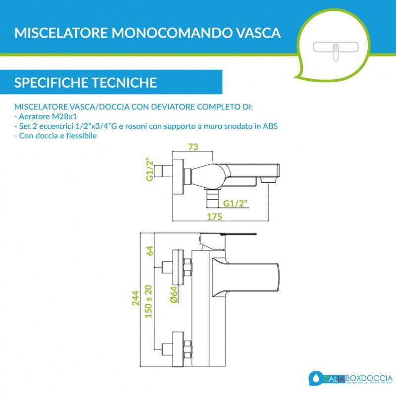 - 1 monocomando vasca completo di set doccia art. TA023 CR