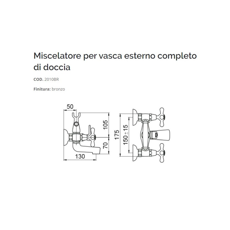 Per gli ambienti più rustici e vintage ItaliaBoxDoccia propone questa imperdibile linea di miscelatori contraddistinta da un design retrò e da un particolare effetto levigato. La particolarità del materiale utilizzato, l'ottone, dona un colore unico. Questo set di miscelatori per bidet, lavabo e vasca sono prodotti tecnicamente avanzati. Realizzati con materiali solidi, in modo da ottenere rubinetti per l'uso quotidiano, facili da pulire e installare. I miscelatori sono dotati ognuno di una cartuccia in ceramica da 40 mm.