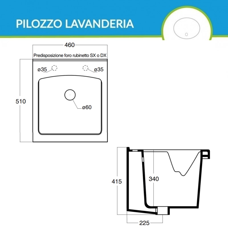 Se hai bisogno di arredare la zona lavanderia della tua casa non lasciarti scappare questa occasione! Questo pilozzo in ceramica bianca è ideato per essere incassato in un mobile. Dotato di foro troppo pieno, il lavatoio in questione è sprovvisto di piano strizzatoio. Misure Larghezza 46 x Profondità 51 x 41,5h. cm.