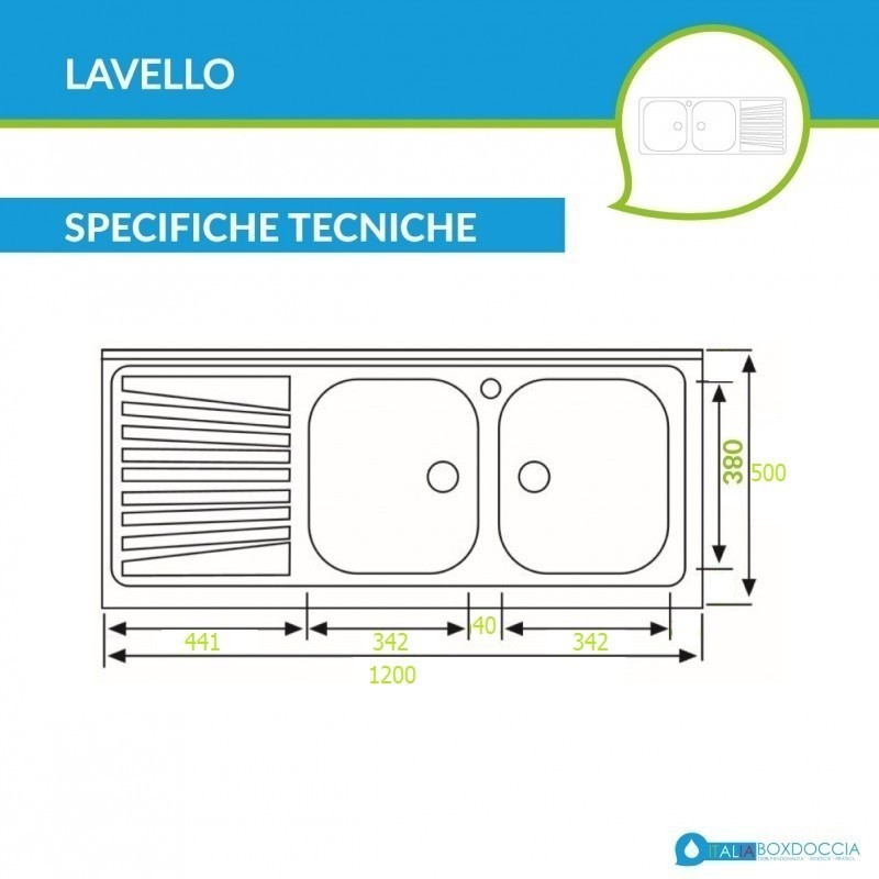 La nostra offerta comprende un mobile sottolavello + lavello 120x50 cm: