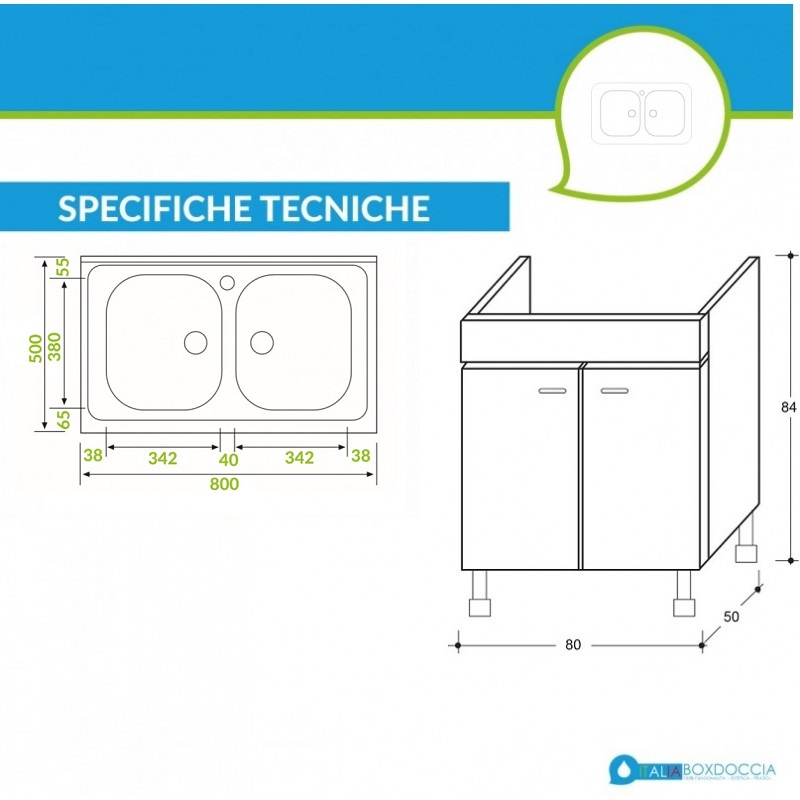 La nostra offerta comprende un lavello 80x50 con 2 vasche: