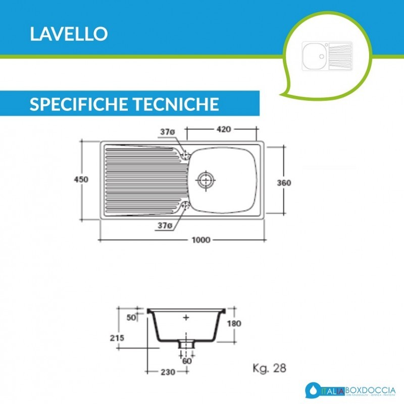 I lavelli in ceramica bianca hanno effetto lucido riflettente per donare luce e brillantezza a tutto l'ambiente. La finitura agevola anche le operazioni di pulizia che sono semplici ed immediate anche con un semplice panno umido. Il lavello presenta la predisposizione per il montaggio della rubinetteria da cucina grazie al foro da 37 mm. Questo lavello da cucina offre anche un comodo ed ampio gocciolatoio, dove riporre comodamente piatti, pentole e stoviglie. La sua ampiezza ne rende possibile l'impiego come ripiano d'appoggio dove preparare piatti gustosi senza rovinare il top della propria cucina.