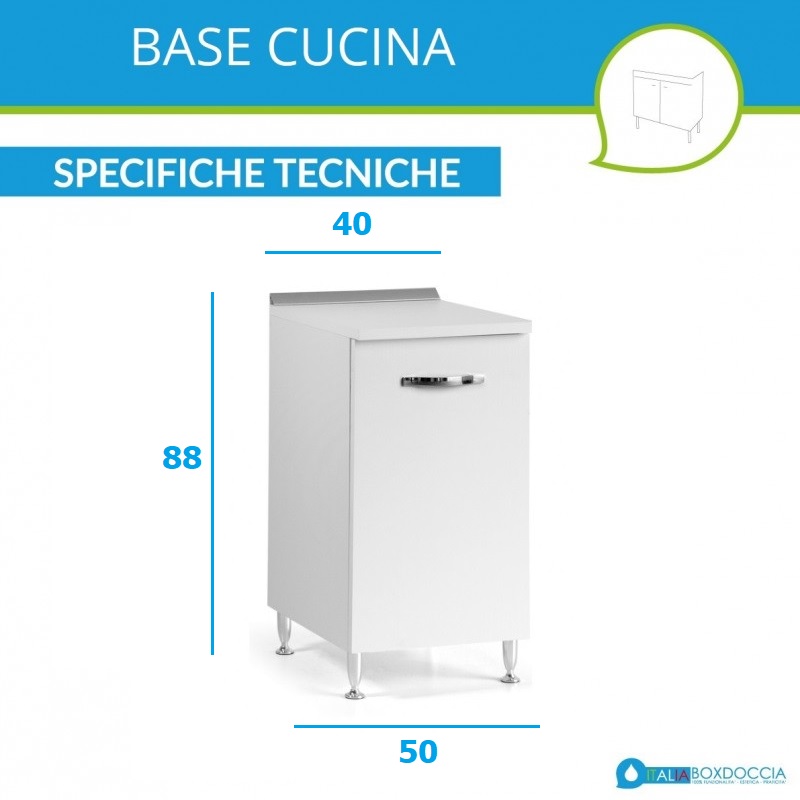 La cucina è uno degli ambienti più utilizzati della casa, quindi è importante trovare soluzioni che coniughino praticità e comfort. Questa serie di base per cucina è facile da montare e pratica da pulire, adatta all'utilizzo domestico quotidiano. La finitura superficiale è color bianco, ed il prodotto è realizzato con pannellature con spessore 18 mm, in materiale idrofugo. Internamente il mobile non ha ulteriori ripiani, così da poter ottimizzare al meglio lo spazio in modo personale, garantendo l'ingombro di volumi ampi, come la pattumiera. I piedini del mobile sono regolabili con una semplice filettatura da ruotare di pochi centimetri, per compensare eventuali dislivelli del pavimento, specie per basamenti rustici o non rifiniti. Il mobile è spedito in un imballo salvaspazio ed è semplice da montare.