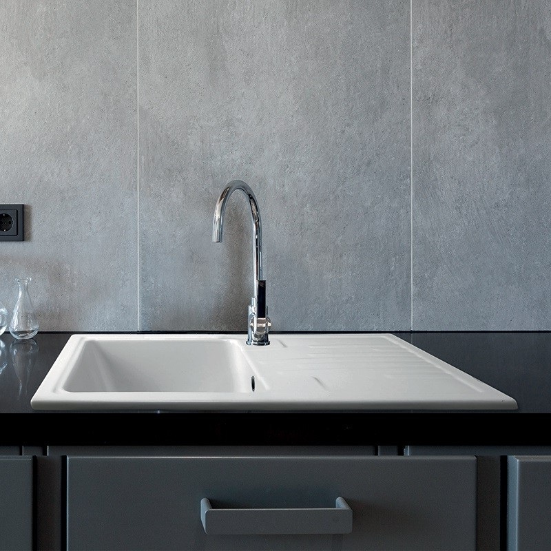I lavelli in ceramica bianca hanno effetto lucido riflettente per donare luce e brillantezza a tutto l'ambiente. La finitura agevola anche le operazioni di pulizia che sono semplici ed immediate anche con un semplice panno umido. Il lavello presenta la predisposizione per il montaggio della rubinetteria da cucina grazie al foro da 35 mm. Questo lavello da cucina offre anche un comodo ed ampio gocciolatoio, dove riporre comodamente piatti, pentole e stoviglie. La sua ampiezza ne rende possibile l'impiego come ripiano d'appoggio dove preparare piatti gustosi senza rovinare il top della propria cucina.