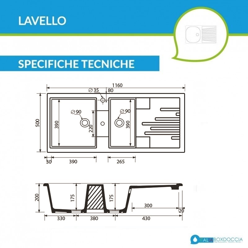 I lavelli in ceramica bianca hanno effetto lucido riflettente per donare luce e brillantezza a tutto l'ambiente. La finitura agevola anche le operazioni di pulizia che sono semplici ed immediate anche con un semplice panno umido. Il lavello presenta la predisposizione per il montaggio della rubinetteria da cucina grazie al foro da 35 mm. Questo lavello da cucina offre anche un comodo ed ampio gocciolatoio, dove riporre comodamente piatti, pentole e stoviglie. La sua ampiezza ne rende possibile l'impiego come ripiano d'appoggio dove preparare piatti gustosi senza rovinare il top della propria cucina.
