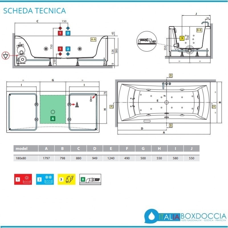 • Misura vasca: 80x180 cm