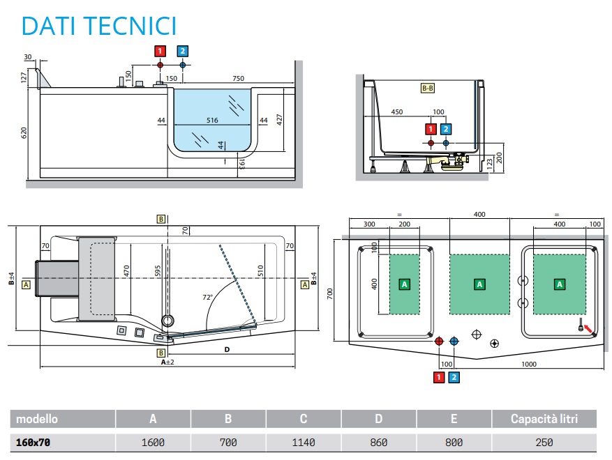 Questa vasca da bagno è concepita per le persone con difficoltà motorie e per persone anziane che vogliono concedersi il relax di un bagno caldo, dotata di uno sportello in vetro temperato ad alta resistenza con un passaggio di 516 mm.