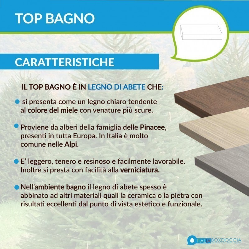 Il mobile è in legno abete trattato in maniera specifica per resistere all’acqua e all’umidità.