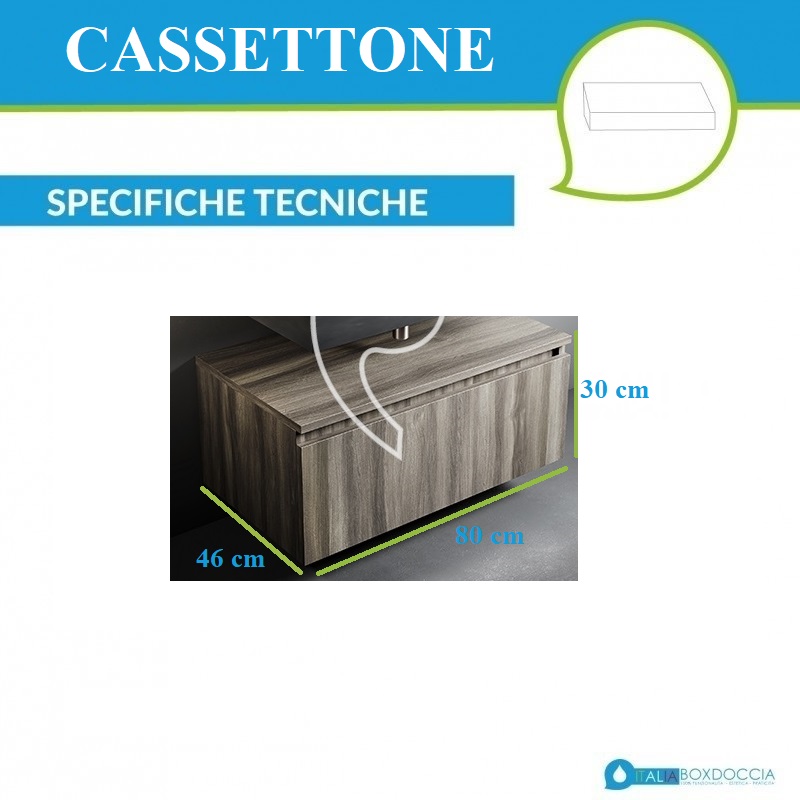 Il cassettone è in melaminico finitura legno trattato in maniera specifica per resistere all’acqua e all’umidità.