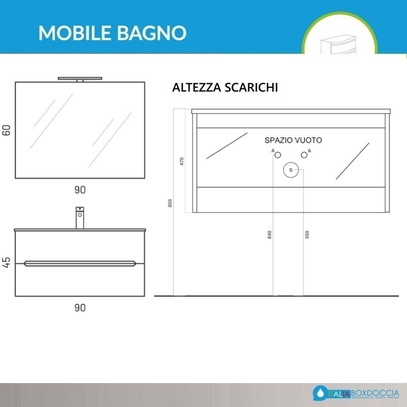Il montaggio del mobile bagno risulta essere facile e veloce grazie ai supporti ed ai tasselli presenti nella confezione. La struttura posteriore del mobile è aperta per facilitare il montaggio anche su impianti preesistenti senza dover apportare modifiche invasive.
