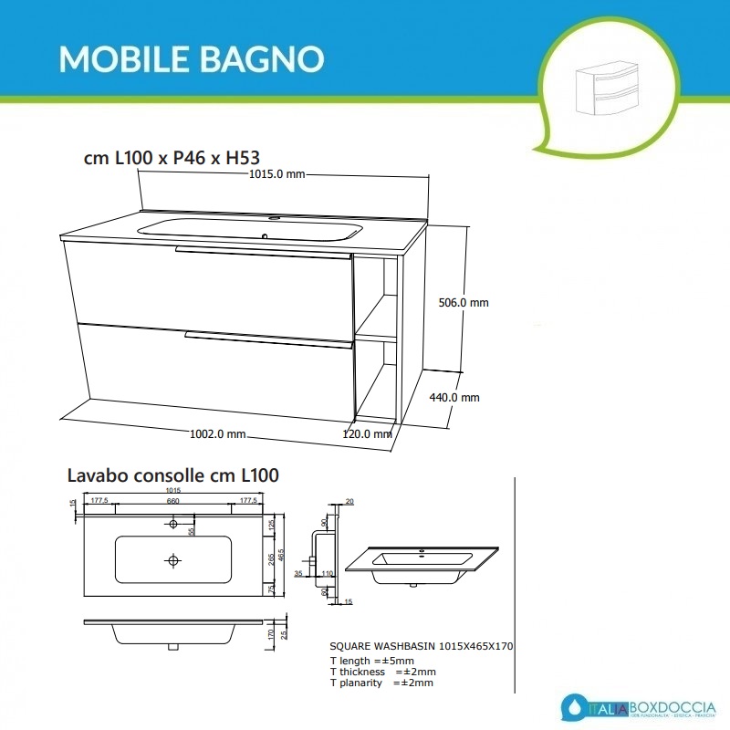 • - Dimensioni: Larghezza 101,5 X Profondità 46,5 cm