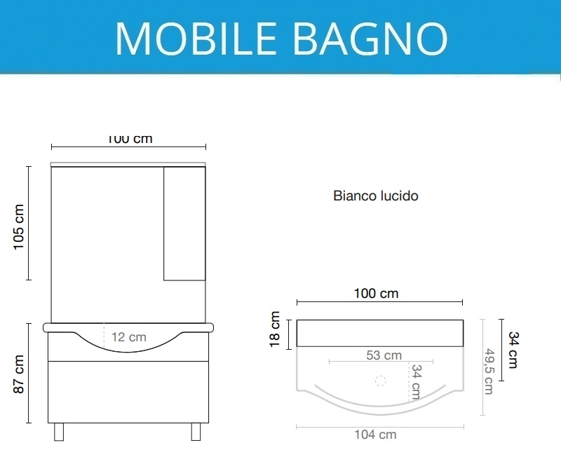 - Incassata sul lavabo troverete la consolle in ceramica bianca da 105 cm, predisposta per una rubinetteria monoforo. Completa la composizione, la specchiera con pensile DX da 100 cm con faretti a led.