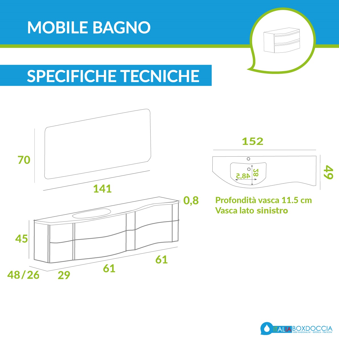 Moderna composizione da bagno tabacco opaco con design onda (versione sinistra) lavabo e fianchi in solid surface (pietra acrilica) e specchio led con casse bluetooth | Dion 150 cm. La composizione da bagno Dion 150 cm è il frutto di una costante ricerca su materiali e design nel settore arredo bagno. L'ampio lavabo così come i fianchi, sono in solid surface, i frontali della base sono costituiti da due ante con apertura push e quattro cassettoni con meccanismo di chiusura soft close. Lo specchio retroilluminato con led a basso consumo è satinato al bordo ed è dotato di Antifog System (antiappannamento).![]()