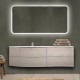 Moderna composizione da bagno rovere sbiancato con design onda (versione sinistra) lavabo e fianchi in solid surface (pietra acrilica) e specchio led con casse bluetooth | Dion 150 cm. La composizione da bagno Dion 150 cm è il frutto di una costante ricerca su materiali e design nel settore arredo bagno. L'ampio lavabo così come i fianchi, sono in solid surface, i frontali della base sono costituiti da due ante con apertura push e quattro cassettoni con meccanismo di chiusura soft close. Lo specchio retroilluminato con led a basso consumo è satinato al bordo ed è dotato di Antifog System (antiappannamento).![]()