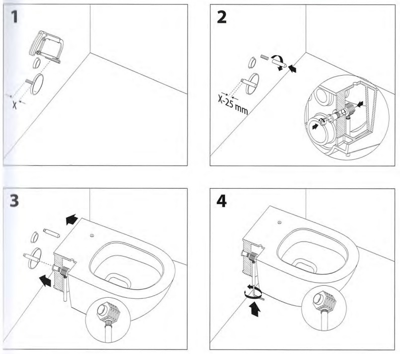 - Kit completo professionale per il fissaggio nascosto di sanitari sospesi con accesso dal basso.