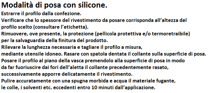 Questo particolare profilo consente di evitare l’utilizzo del silicone per la sigillatura e, oltre al beneficio estetico ne assicurano un adeguato livello igienico nel tempo.