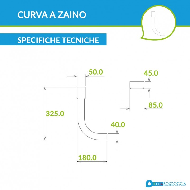 La curva zaino e' di materiale ottone ramato e la sua funzione e' di collegare la cassetta in ceramica o plastica al sanitario. La parte piu' larga non e' saldata ma tramite deformazione del materiale ha subito la trasformazione da un diametro 40mm a quello di 50mm, cio' che serve per entrare nel fondo. Il kit fornisce il morsetto che fa da chiusura sul sanitario, la guarnizione conica che va a collocarsi nel fondo del meccanismo il dado 2 pollici con battente e' in plastica tipo abs e il copridado anch'esso di ottone ramato.