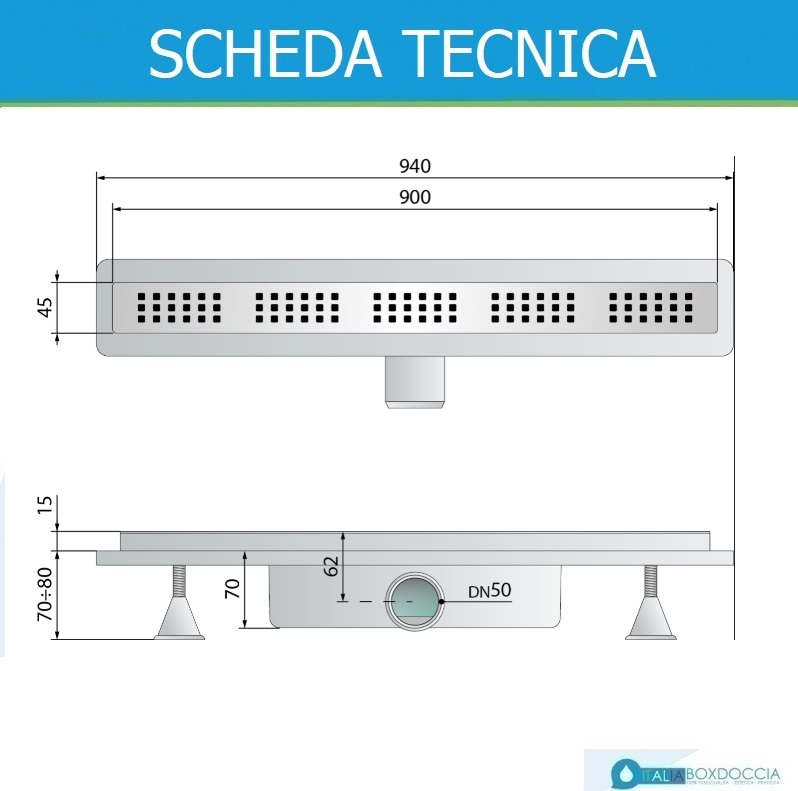 La nuova canalina di scarico è la risposta a tutti i progettisti e designer che cercano di trovare soluzioni innovative e funzionali per l'arredo interior. La reversibilità della canalina in acciaio permette di incollare i propri rivestimenti sulla griglia centrale per un design unico e ricercato. Il corpo della canalina è munito di piedini regolabile che favoriscono il livellamento dello scarico con estrema semplicità.