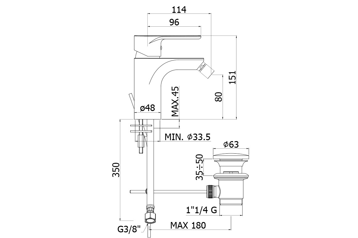 Miscelatore per bidet modello Paffoni GR135CR: dotato di piletta di scarico da 1" ¼, flessibile in acciacio inox ed accessori per un uso immediato ed agevole; realizzato in ottone Cromato, in grado di resistere al meglio ad umidità ed agenti esterni.