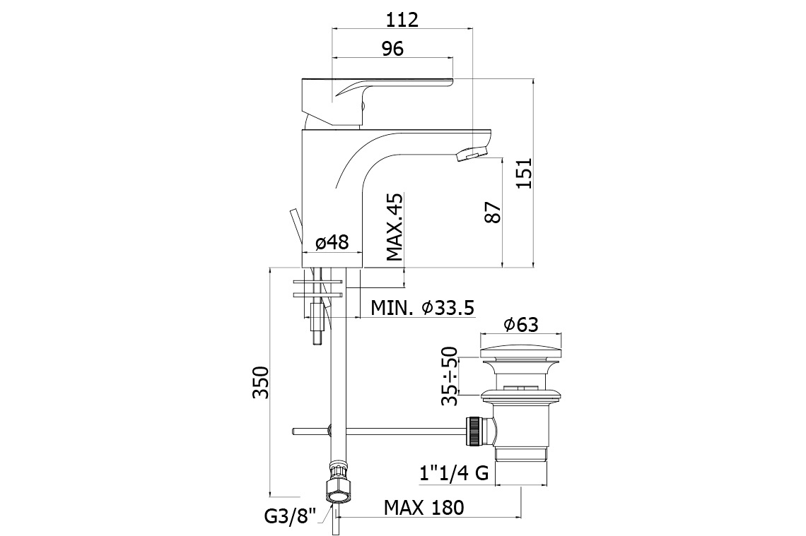 Foro miscelatore: 1"1/4G. Piletta inclusa