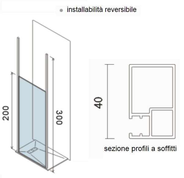 Le pareti walk-in sono la soluzione ideale per ambienti Open Space, e permettono un montaggio sia filo pavimento sia in appoggio sul piatto doccia. La nuova altezza del box doccia da 200 cm nasce dalla volontà di offrire la migliore protezione anche per soffioni a soffitto. La riducibilità dei bracci assicura la massima compatibilità con tutti i soffitti.