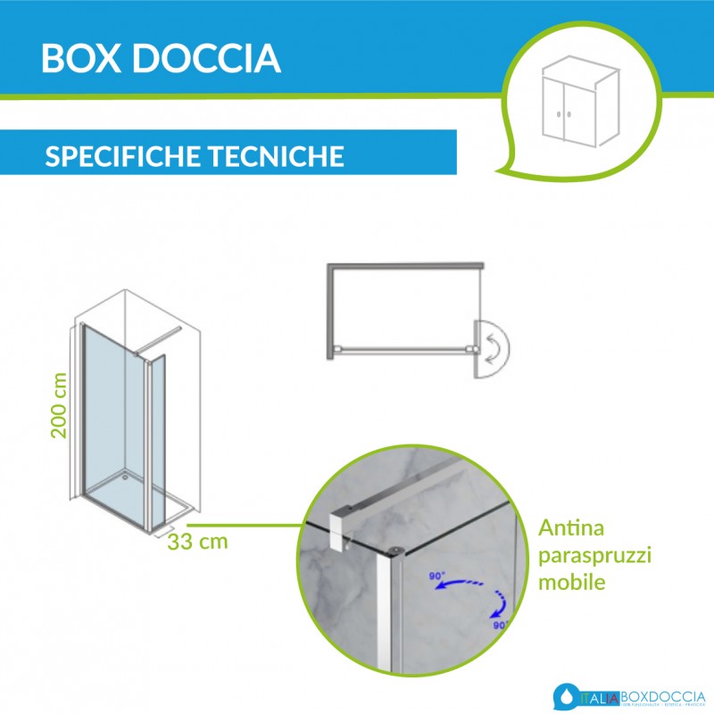 Parete (walk in), cristallo temperato anti infortunistico trasparente 8 mm