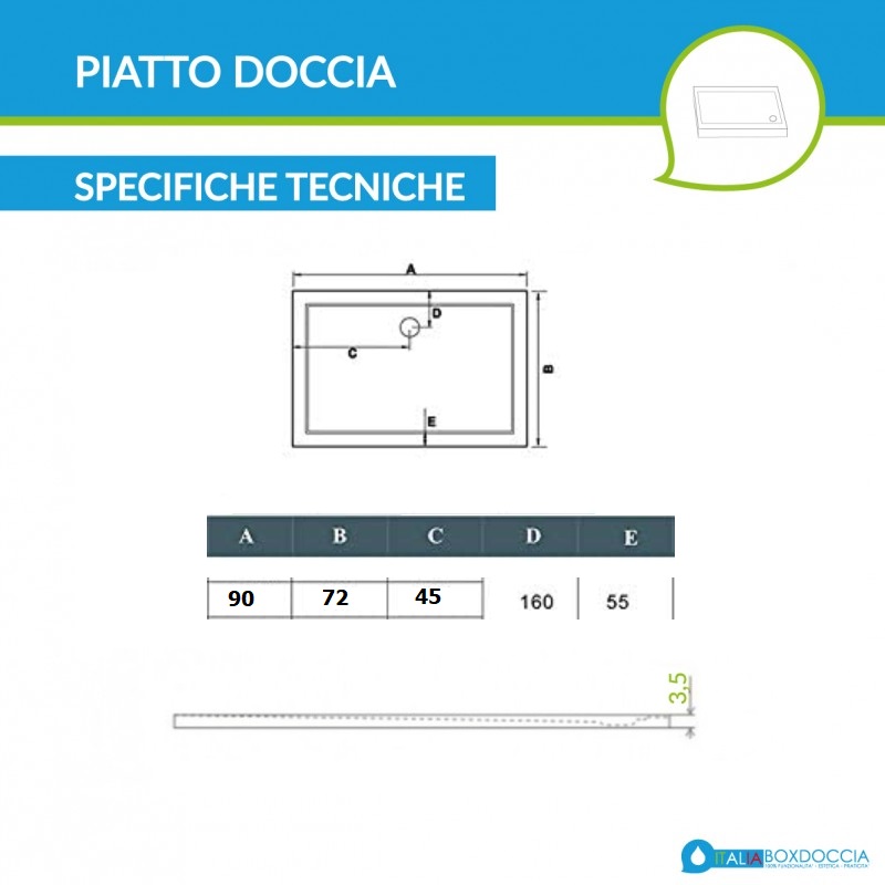 Piatto Doccia Ultrasottile costruito in materiale Acrilico Sanitario Bianco di altissima qualità. La sua Forma Rettangolare ed il colore chiaro accentuano lo stile moderno e minimalista che contraddistingue questo prodotto. La sua conformazione permette alle goccioline d'acqua di defluire al meglio verso lo scarico. Il Profilo Regolare del piatto doccia ed il colore presente su tutti i lati ne consentono il montaggio da ogni angolazione con la possibilità di scegliere l'installazione sopra il pavimento oppure ad incasso o filo pavimento.