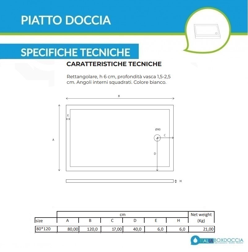 La superficie del piatto presenta dei dettagli antiscivolo che aumentano l'attrito tra i piedi e il piano d'appoggio, limitando il rischio di scivoloni. Le dimensioni standard permettono di scegliere liberamente il box doccia da abbinare, facilitando anche l'installazione.