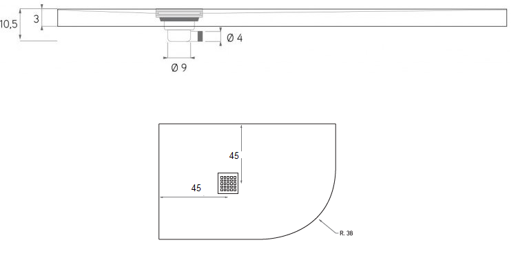 - piletta sifonata e grigia in acciaio inox quadrata fornita di serie