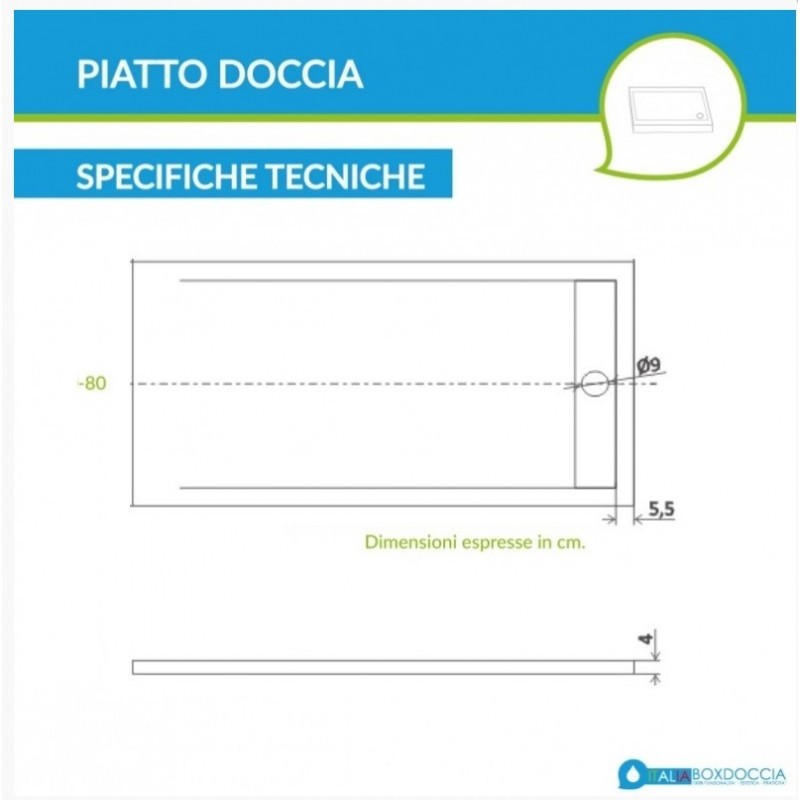 Su Misura da 80 cm Piatto Doccia Orient con Bordo in Pietra Sintetica Superficie Effetto Ardesia Colore Antracite