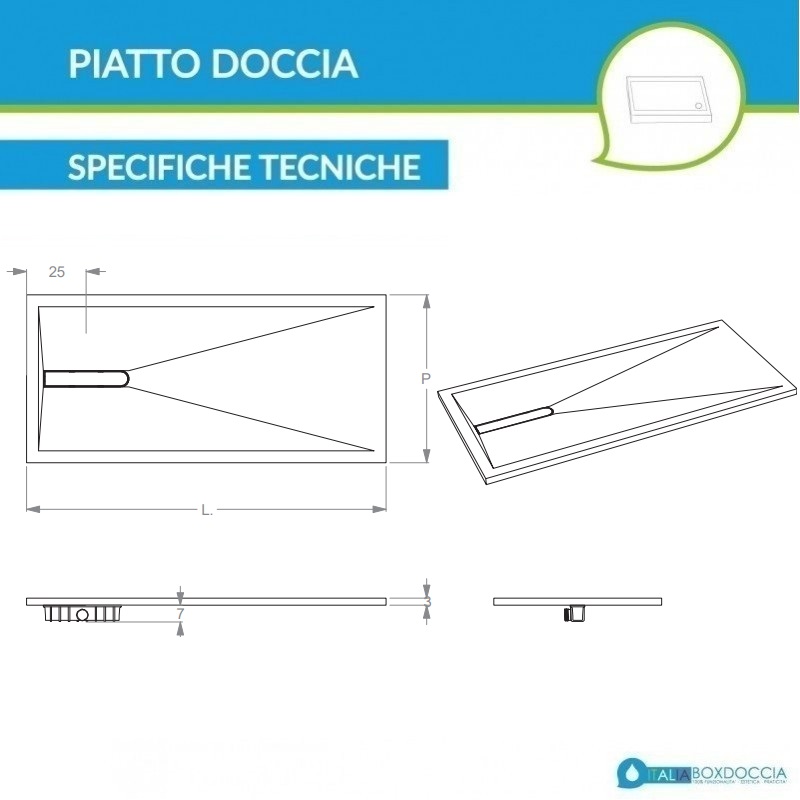 Piatto doccia realizzato in pietra sintetica con una particolare texturizzazione che conferisce alla superficie del piatto doccia stesso, un elegante effetto PUNTINATO 3D. La particolare superficie del piatto crea un rilievo che rende la superficie calpestabile antiscivolo. Il piatto doccia è interamente colorato in massa. Questo vuol dire che l’impasto che ha portato alla realizzazione del piatto doccia è completamente dello stesso colore. Questa caratteristica è fondamentale in quanto permette al piatto di essere molto resistente agli urti e qualora a seguito di un urto dovesse scheggiarsi, la parte mancante risulterebbe sempre dello stesso colore e quindi il danno sarebbe molto meno evidente.