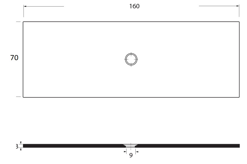 Piatto doccia Uniko super sottile in ceramica rettangolare design ultra moderno Altezza 3 cm, smaltato su 4 lati bianco opaco mat (cotone) predisposto per piletta di scarico sifonata diametro 90 mm con finitura standard Liscia. Foro piletta al centro del piatto doccia.