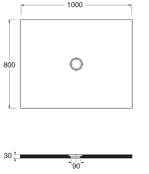Piatto doccia Uniko super sottile in ceramica rettangolare design ultra moderno Altezza 3 cm, smaltato su 4 lati bianco opaco mat (cotone) predisposto per piletta di scarico sifonata diametro 90 mm con finitura standard Liscia. Foro piletta al centro del piatto doccia.