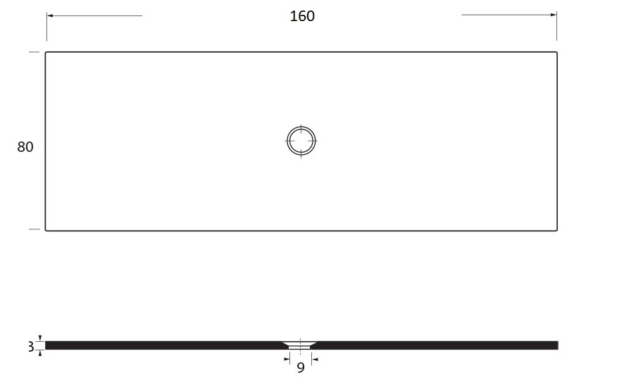 Piatto doccia Uniko super sottile in ceramica rettangolare design ultra moderno Altezza 3 cm, smaltato su 4 lati bianco opaco mat (cotone) predisposto per piletta di scarico sifonata diametro 90 mm con finitura standard Liscia. Foro piletta al centro del piatto doccia.