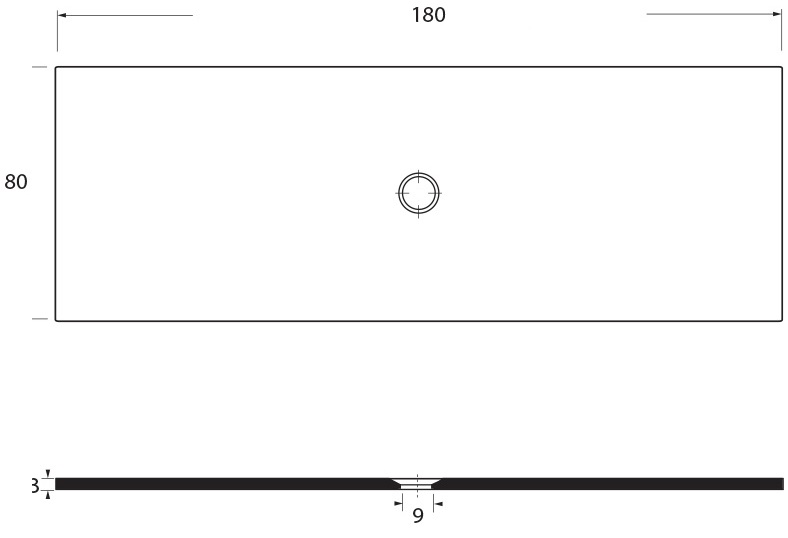 Piatto doccia Uniko super sottile in ceramica rettangolare design ultra moderno Altezza 3 cm, smaltato su 4 lati bianco opaco mat (cotone) predisposto per piletta di scarico sifonata diametro 90 mm con finitura standard Liscia. Foro piletta al centro del piatto doccia.