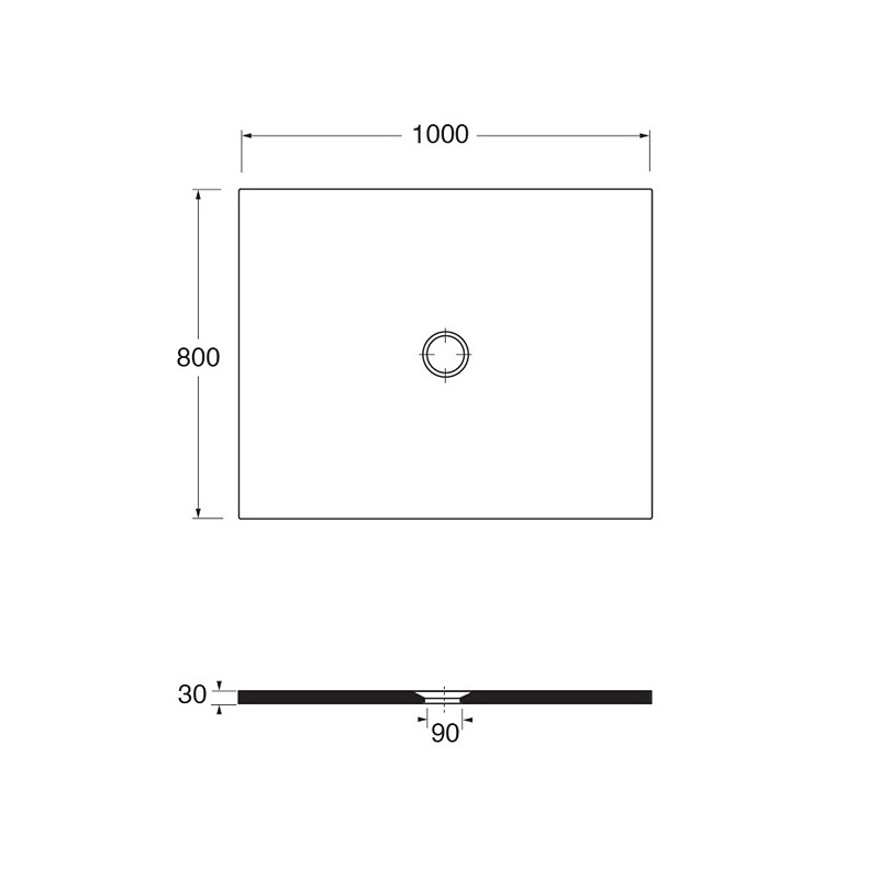 Piatto doccia Uniko super sottile in ceramica rettangolare design ultra moderno Altezza 3 cm, smaltato su 4 lati tortora finitura opaca predisposto per piletta di scarico sifonata diametro 90 mm. Foro piletta al centro del piatto doccia.