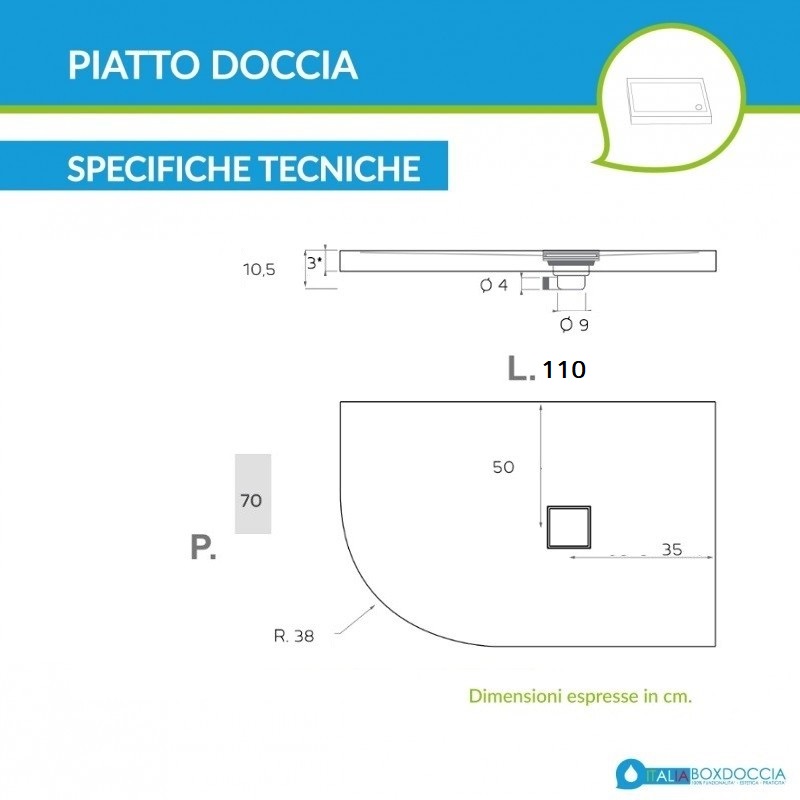 • Il piatto doccia viene fornito completo di piletta di scarico e copripiletta in acciaio inox.