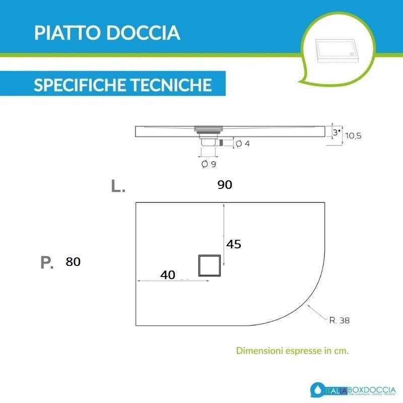 • Il piatto doccia viene fornito completo di piletta di scarico e copripiletta in acciaio inox.
