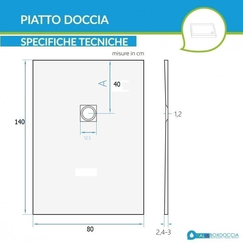 Piatto doccia 80x140 H. 3 cm. in Pietra Sintetica con Superficie Effetto Ardesia finitura marquina