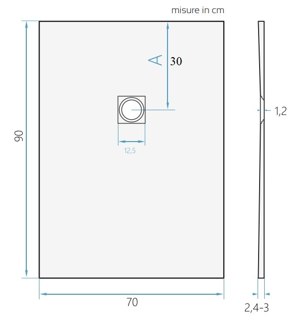 Piatto doccia 70x90 H. 3 cm. in Pietra Sintetica con Superficie Effetto Ardesia finitura cemento