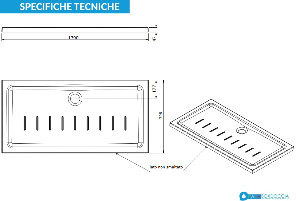 Qualità produttiva elevata, design curato e spessore ridotto, sono queste le caratteristiche di base del piatto doccia proposto. A ciò si aggiunge un design interno particolare, diverso dalla maggior parte dei piatti doccia in commercio che lo rendono un prodotto unico e ideale per arredare l'ambiente bagno con gusto e funzionalità. Oltre l'aspetto estetico cè anche una grande praticità dovuta al bordo contenitivo che evita fastidiose fuoriuscite d'acqua