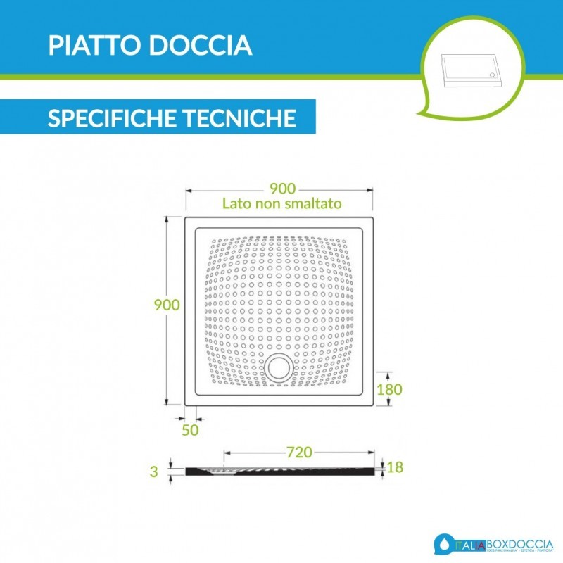 Piatto Doccia Relax 90x90 H 3 cm in Colore Bianco Lucido con Piletta INCLUSA l Antiscivolo Anti-Batterico
