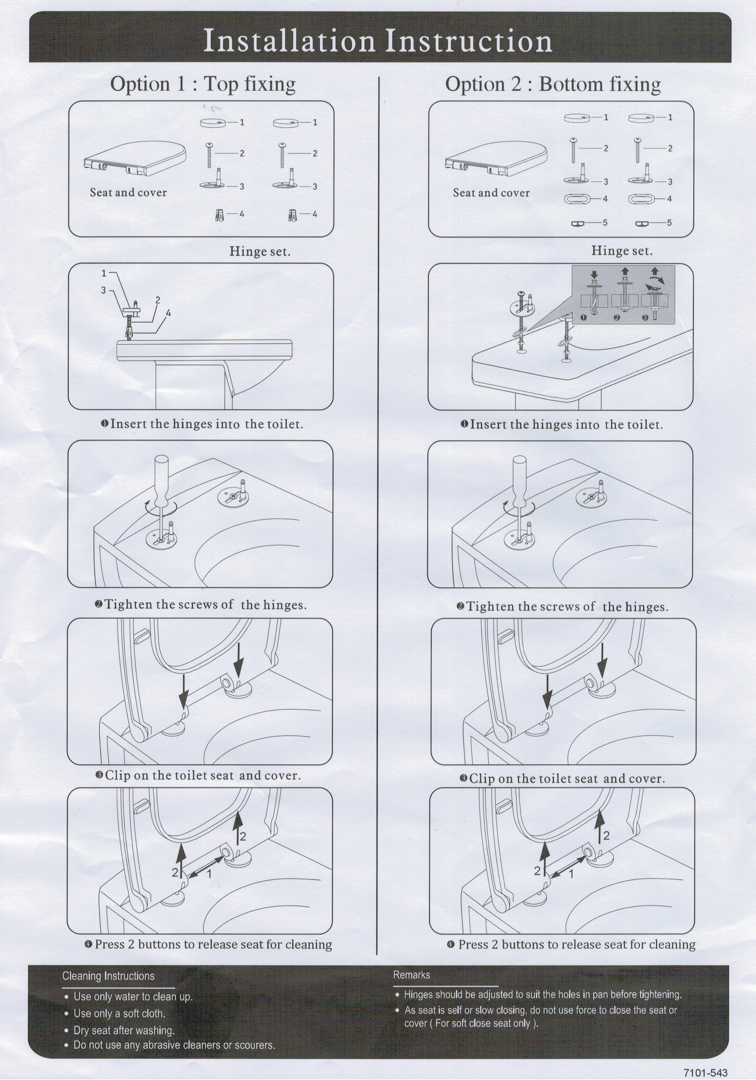 La qualità del prodotto è risultata come da aspettative, soprattutto in considerazione del prezzo. Istruzioni assenti all'interno della confezione, ma è presente una sequenza di montaggio per immagini all'esterno della scatola stessa (purtroppo incomplete e poco chiare nell'ultima parte, quella più importante, dove bisogna affidarsi solo al buon senso e alla propria capacità ed esperienza manuale, perchè le lettere che dovrebbero identificare i vari componenti non li identificano affatto). Dopo montato il funzionamento è perfetto, la chiusura rallentata funziona alla perfezione.