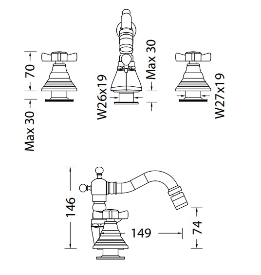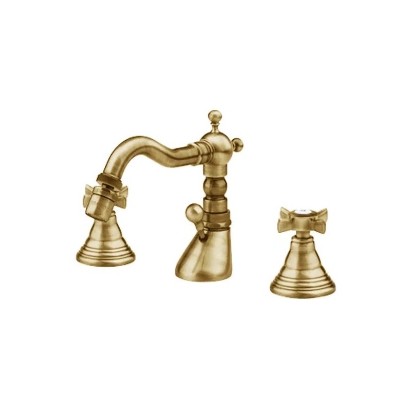 Nuovo miscelatore retrò per bidet con scarico modello Orientes fornito di 2 manopole a 4 punte per l'acqua calda e l'acqua fredda e bocca di erogazione girevole da 7,4 cm. Un'estetica non invadente inserita in uno stile ben preciso dal fascino vintage. Il miscelatore è realizzato in ottone bronzato con manopole a 4 punte. Gli attacchi standard da ½" garantiscono la massima compatibilità con tutte le tipologie di impianti.