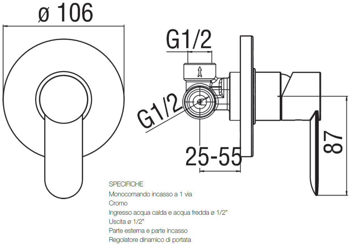 • Tipologia: miscelatore doccia ad 1 uscita con regolatore dinamico di portata